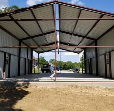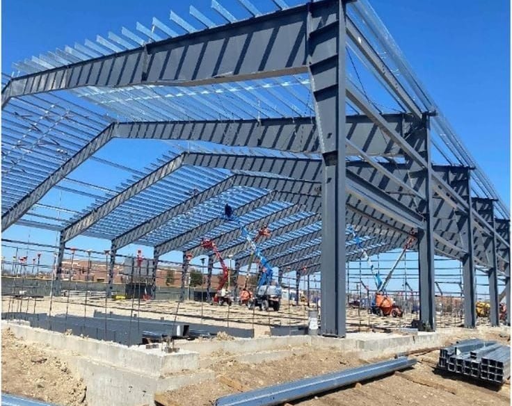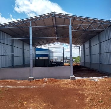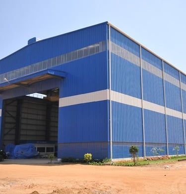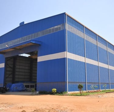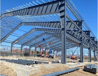 متخصصون في بناء هناجر حديد، مستودعات ضخمة، ورش صناعية، ومستودعات بسقف سندويش بنل بتصاميم قوية ومتانة عالية.
