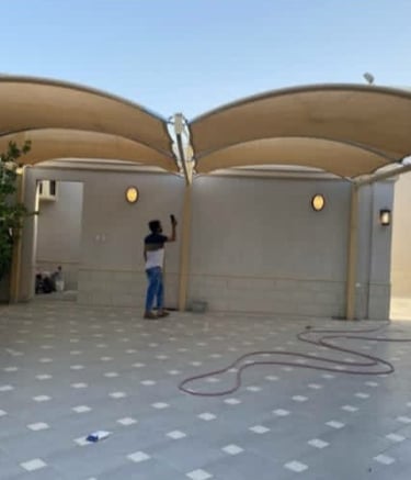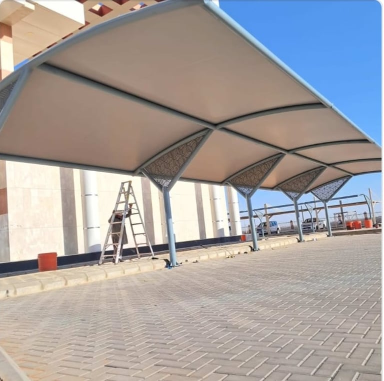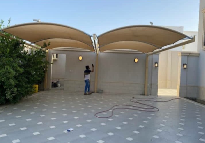 فريقنا في جدة يبدع في تركيب مظلات السيارات والحدائق والسواتر بجودة عالية